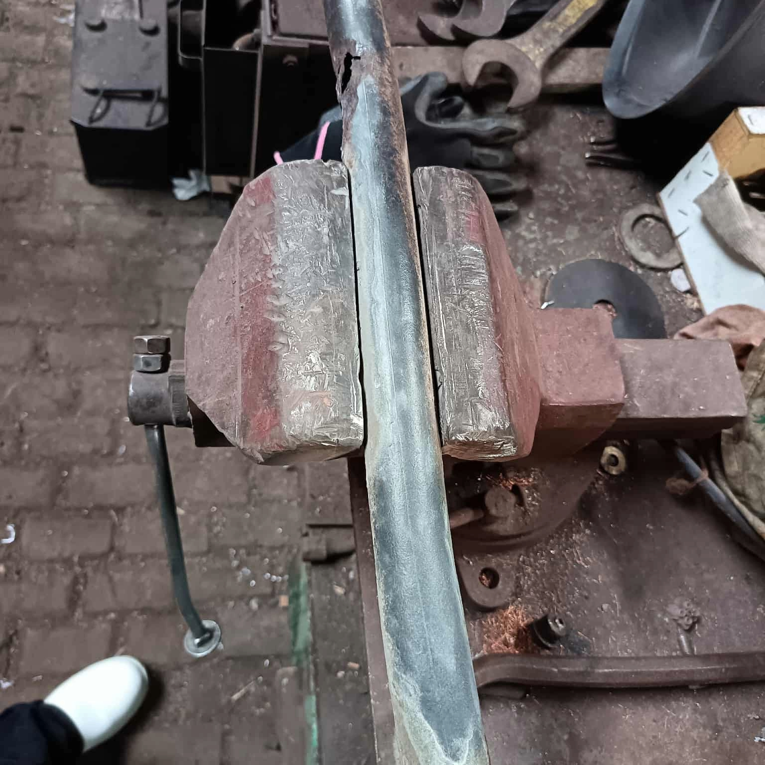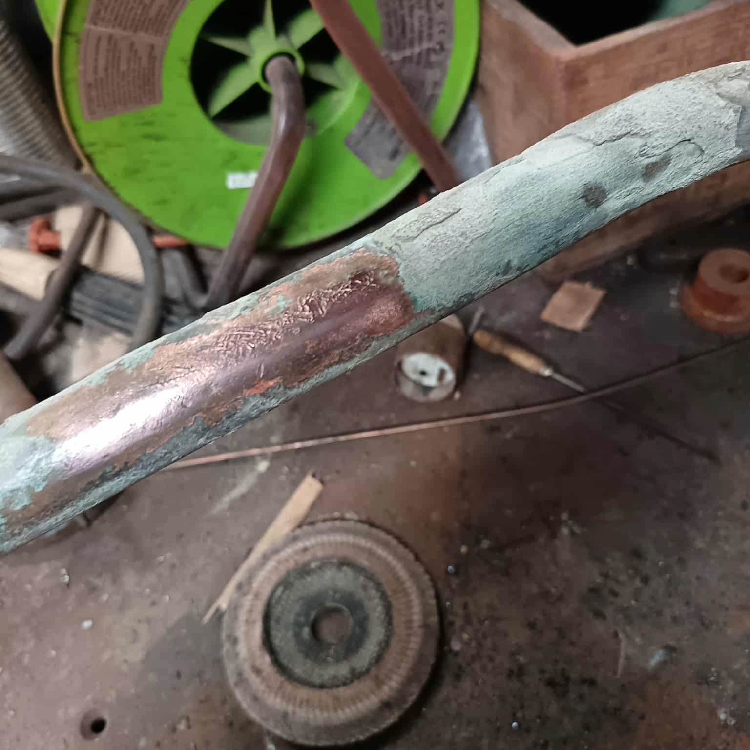 Séance du jour par JuJu ! Nettoyage de divers tuyaux complètement recouverts par le ciment.