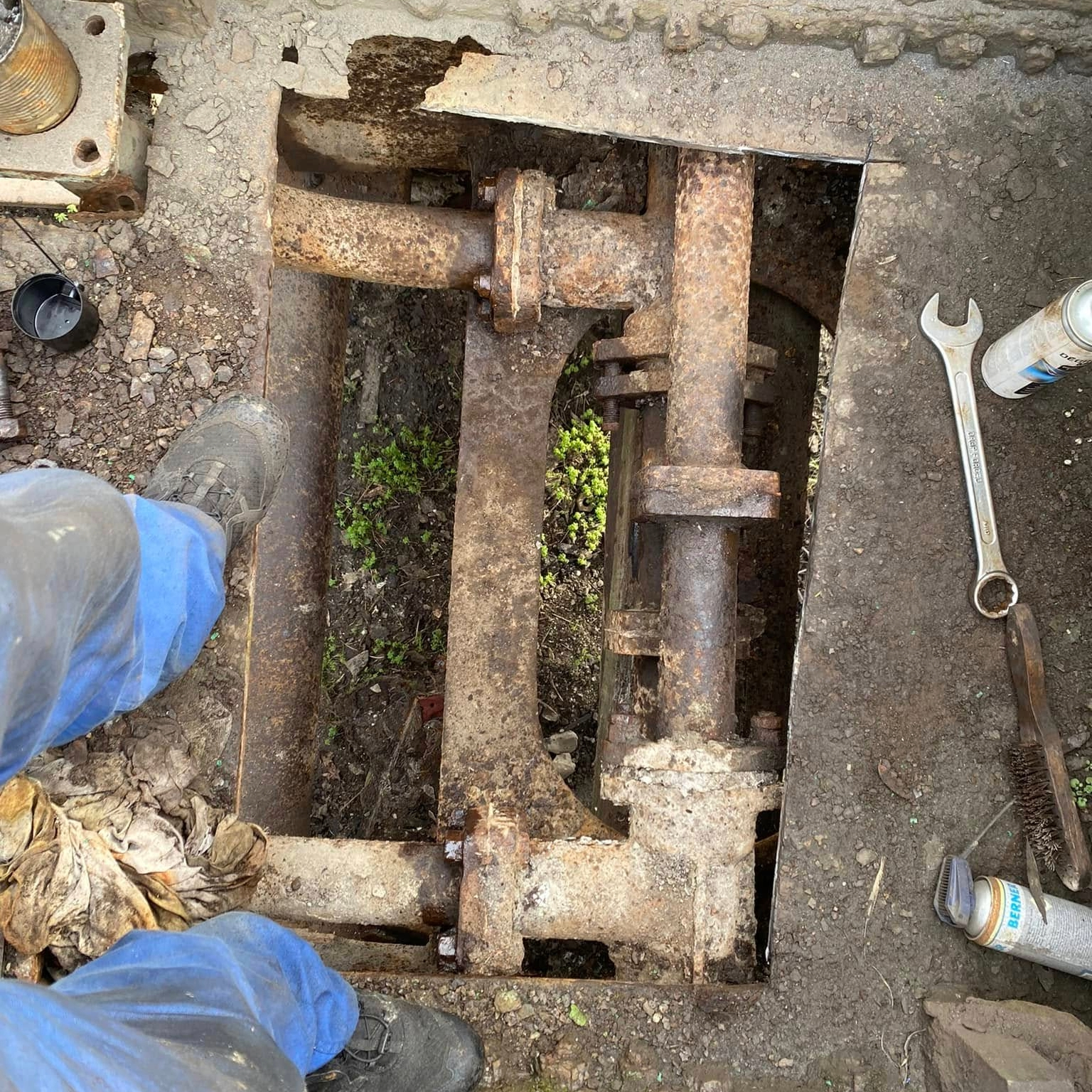 Première séance de travail de l’année avec le démontage de la tuyauterie d’arrivée et de sortie de vapeur. Xavier et Ambroise on passé la journée à se faufiler afin d’extraire les écrous bien fatigués.
